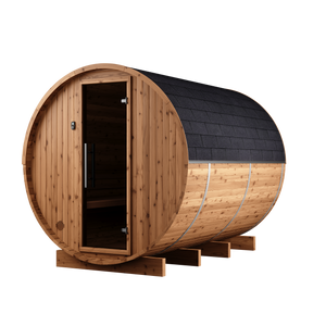 Vassa 6 Person 2 Tier Finnish Barrel Sauna with Heater - By Finnish Barrel Saunas