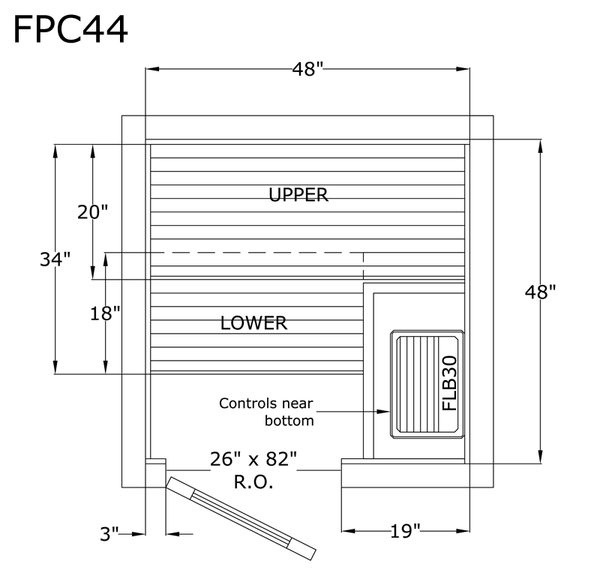 Below are some of Finlandia's standard size FPC Sauna room sketches. Sizes signify interior stud-to-stud measurements and bench widths. Any of these layouts may be modified to fit your needs. All rooms are made per order, and Finlandia can create custom Sauna material packages for any size room.